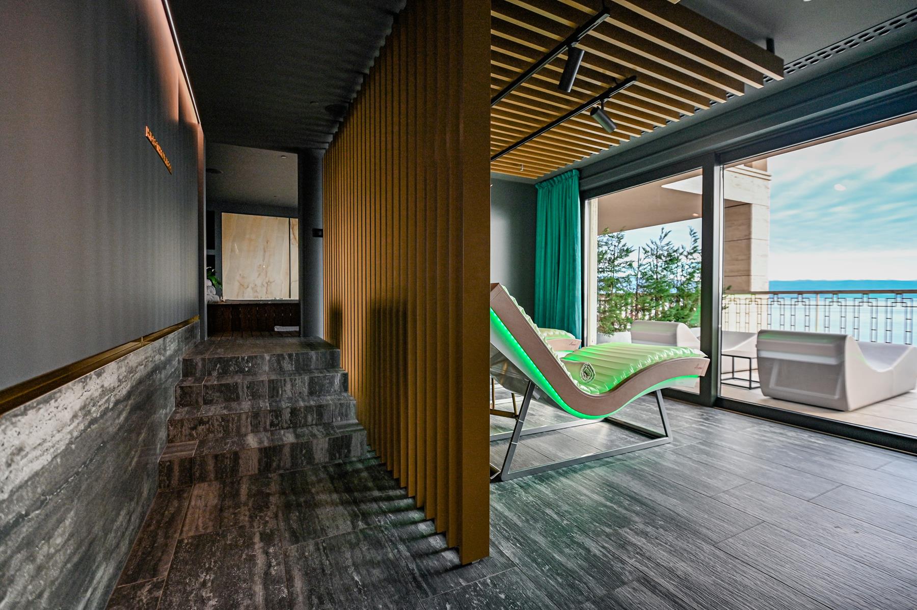 - Relax area with with chromotherapeutic loungers