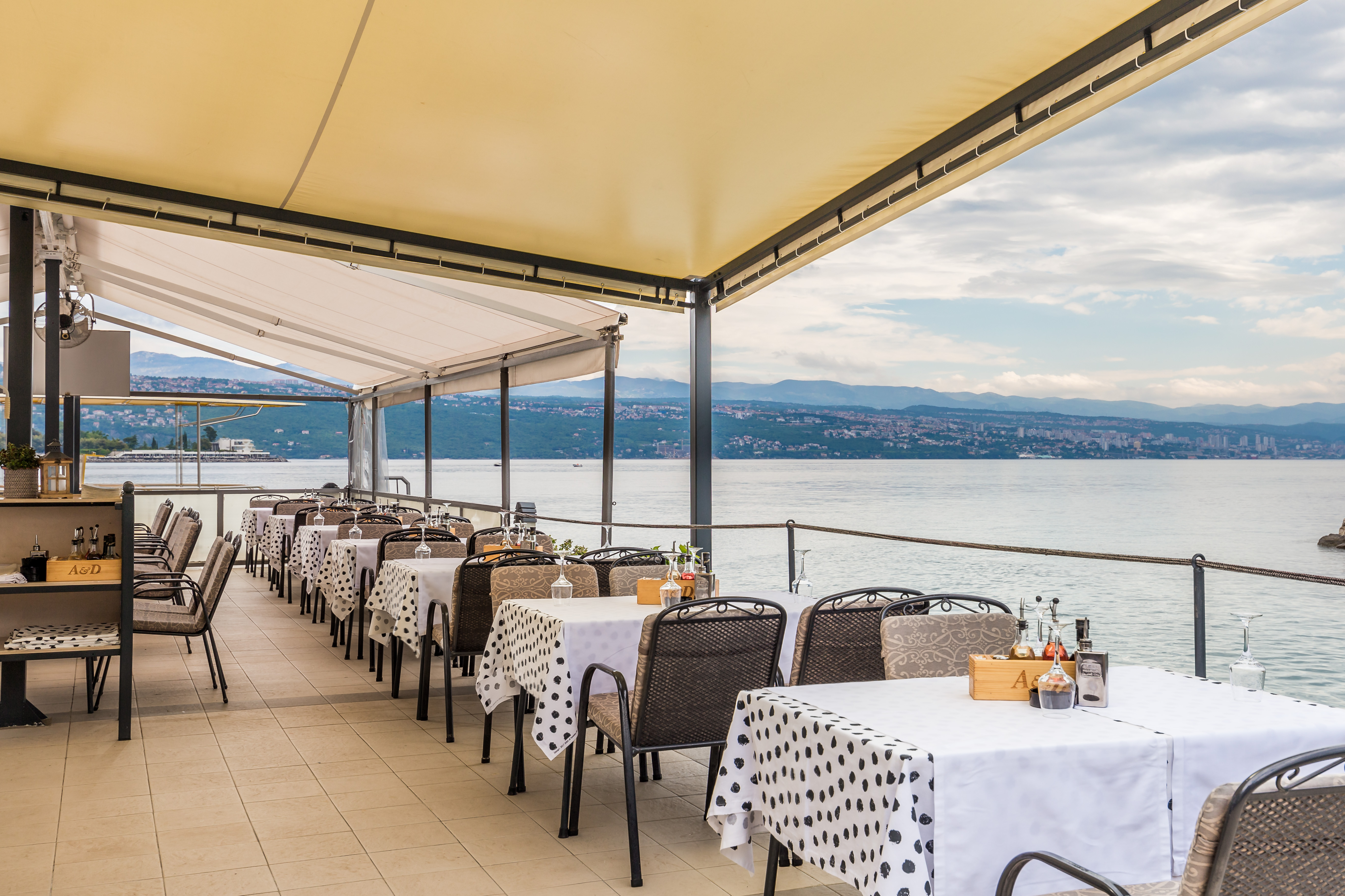 Terasa koju oplahuju morski valovi, kao kakav otočić okružen morem, poseban je adut Grill restorana A&D zbog kojeg ručak ili večera probranih ribljih i mesnih specijaliteta s roštilja na drveni ugljen postaje nezaboravnim gastronomskim doživljajem.