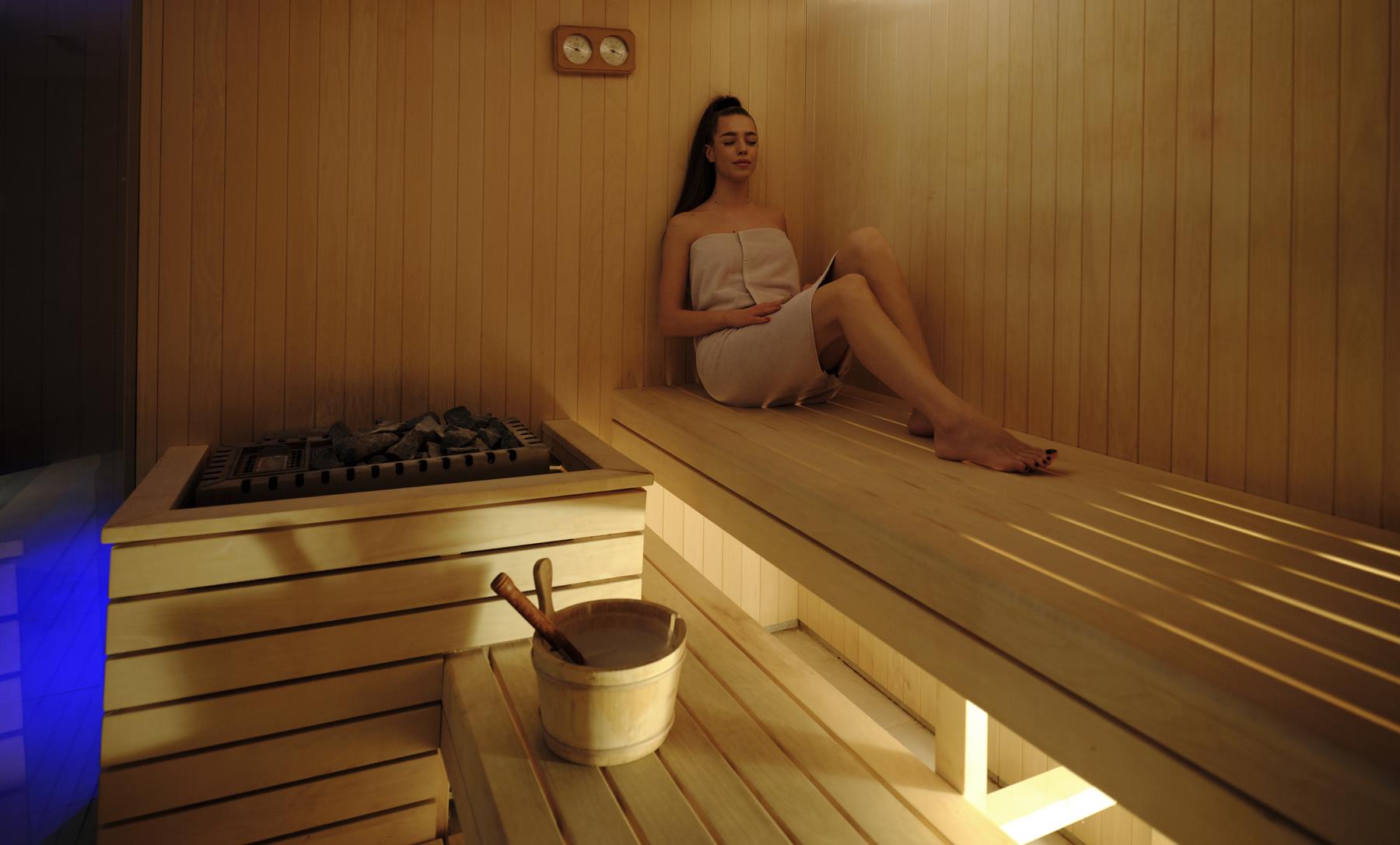 - Sauna centre (Finnish sauna, Turkish bath, soft Finnish sauna, massage showers, Ice fountain, relax zone, heated deckchairs, 7-person whirlpool)
