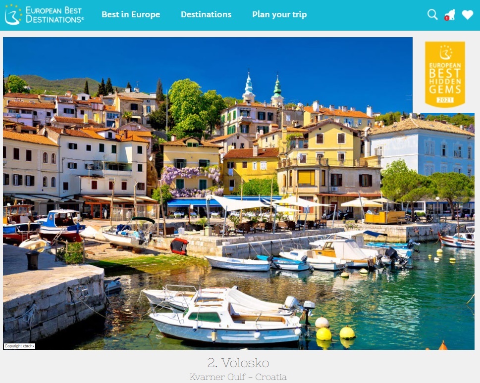 Volosko je odabrano među najljepše “skrivene dragulje” u Europi, prema izboru organizacije European Best Destinations čiji turistički portal ima više od šest milijuna posjetitelja. European Best Destinations (EBD) spada među vodeće neovisne autoritete u turizmu, a Volosko je svoju poziciju u prestižnom izboru zaslužilo odlukom panela putnika koji su birali između više od 280 destinacija diljem kontinenta.