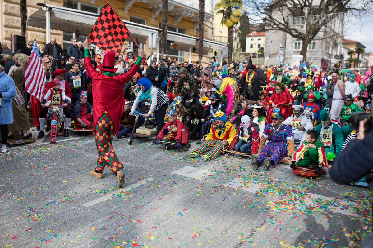 Službeni dio utrke počinje u 12 sati, a uz čelnike Grada Opatije i Turističke zajednice, prvi će se spustiti i brojni gosti ovog jedinstvenog pusnog okupljanja. U protokolarnom spustu sudjelovat će brojne delegacije iz Hrvatske i inozemstva, među kojima će biti gradonačelnik poljskog grada Zakopane Lezsek Dorula, župan slovenskog Pirana Đenio Zatković, gradonačelnik austrijskog grada Bad Ischl Hannes Heide te gradonačelnik Novog Vinodolskog Velimir Piškulić.