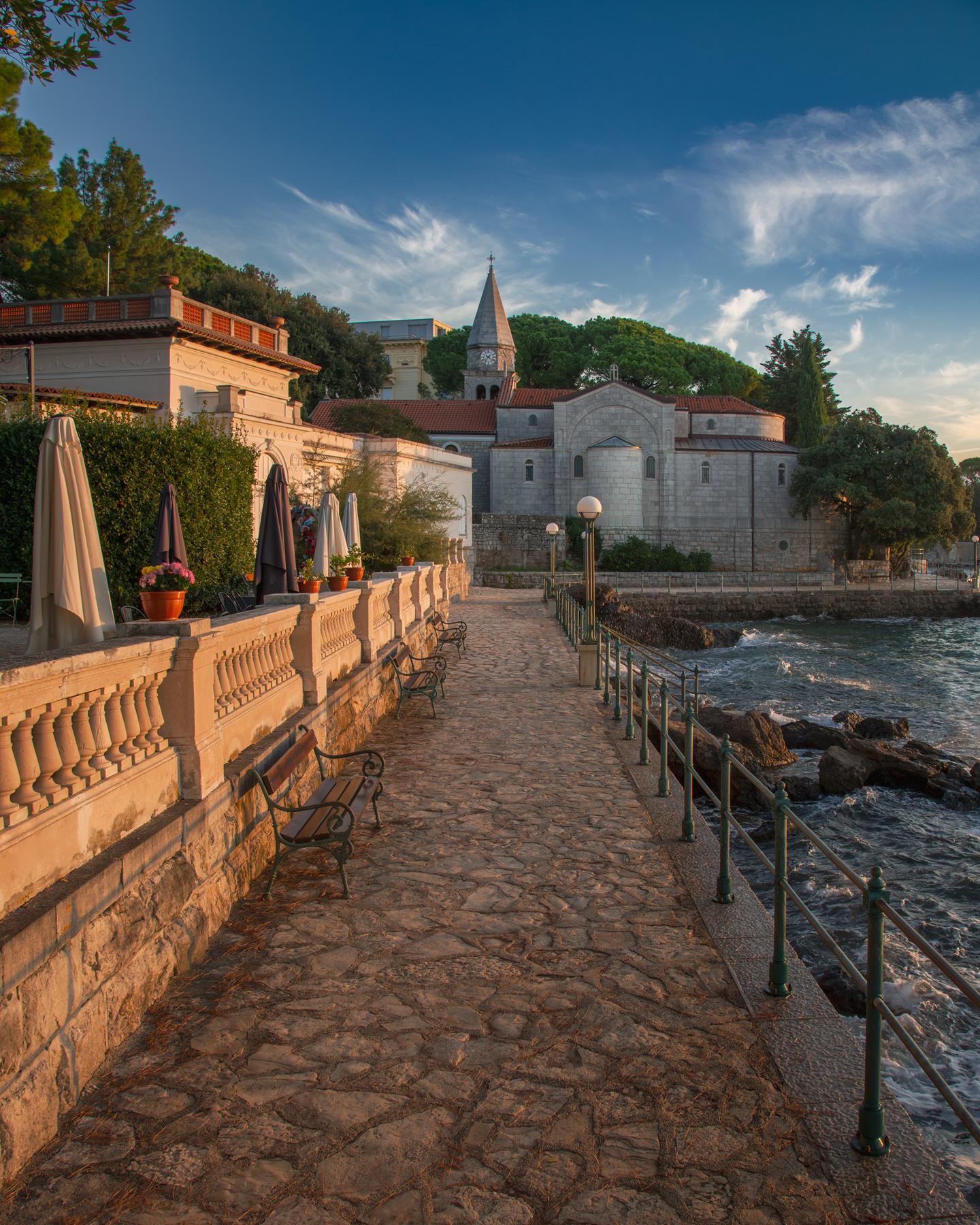 Čarobno sprehajališče Lungomare je od nekdaj krasilo prečudovit Kvarner. Odkrijte njegove skrite zalivčke in uživajte v mirnem sprehodu ob morju.