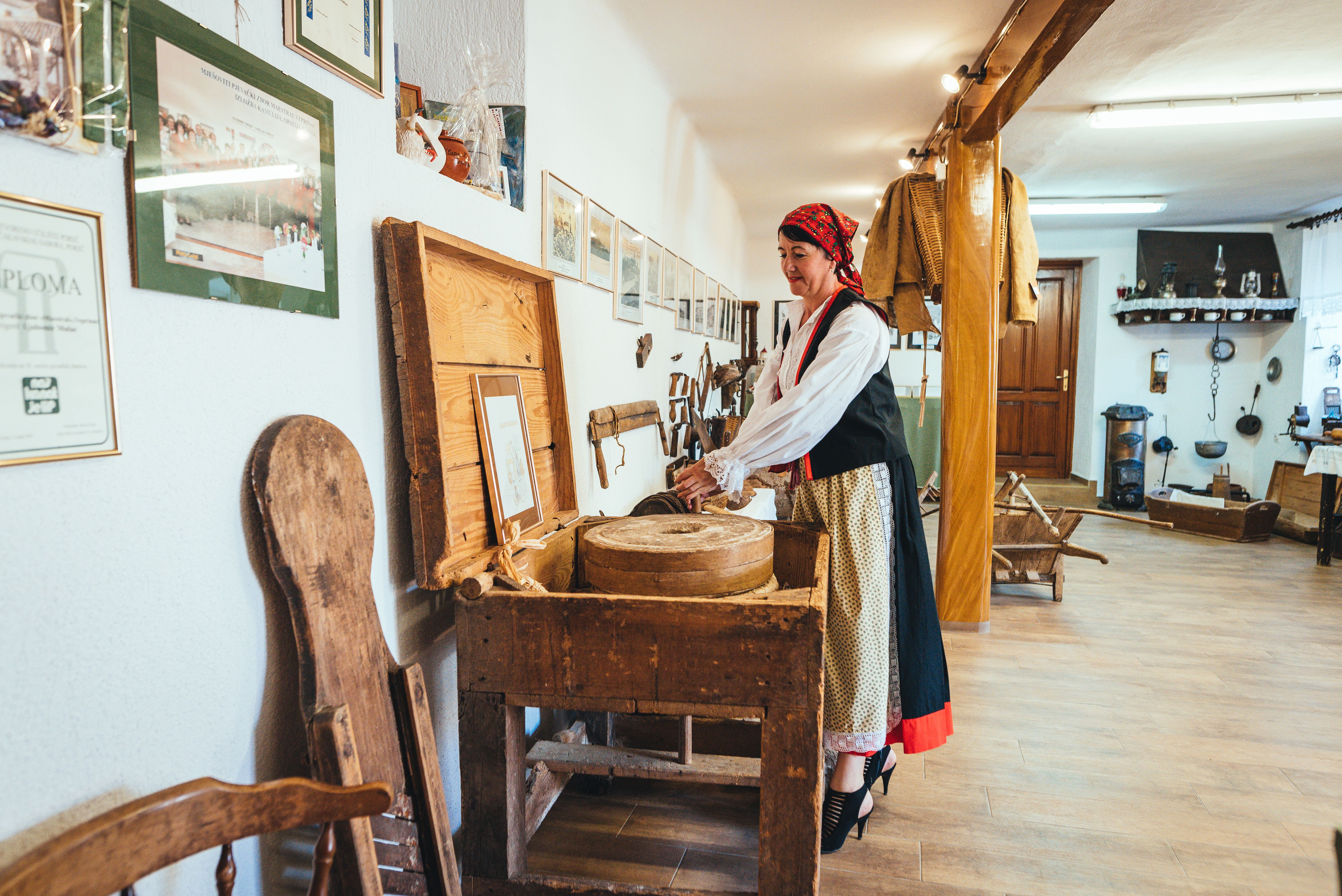 Etno zbirka je smještena u općinskoj kući „komunšćici“. Predmetima koji su sakupljeni i izloženi, pokušalo se prikazati nekadašnji način života u Veprincu. Mještani Veprinca (ili čakavski Leprinca), bavili su se većinom poljodjelstvom i stočarstvom, sijali su raž, pšenicu, ječam i zob, uzgajali smokve, masline, jabuke, orahe, kestene i vinovu lozu, te uzgajali ovce, kokoši, koze i, kasnije, goveda i konje.