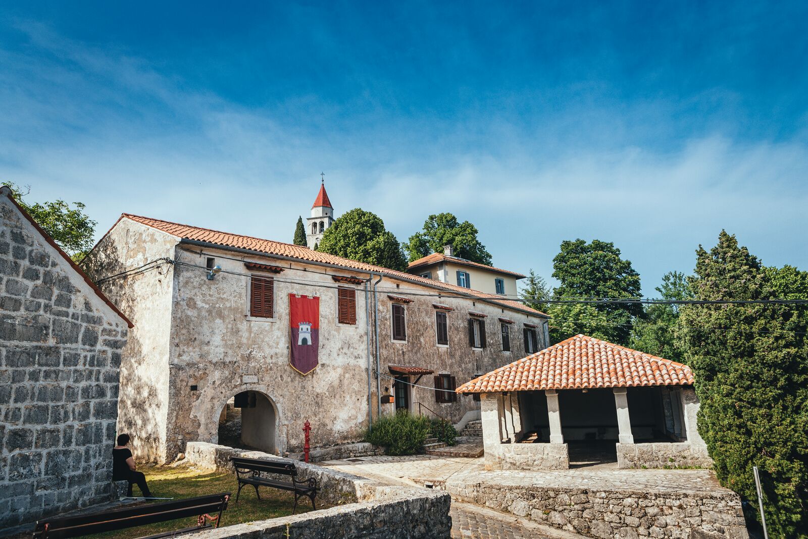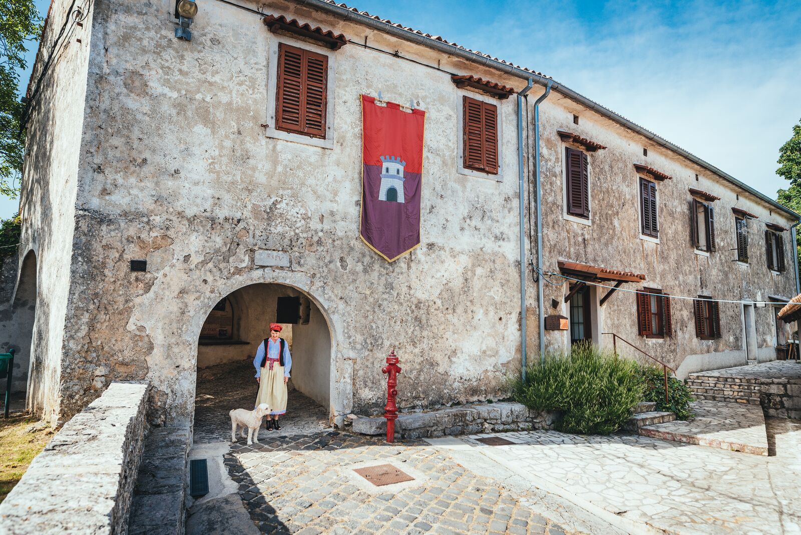 U stari grad ulazi se kroz gradska vrata s tri otvora u sklopu nekadašnje zgrade veprinačkog komuna. S desne strane ispred vrata nalazi se gradska loža, a lijevo je crkva Sv. Ane s natpisom iz 1442. godine, u kojoj su nedavno prilikom radova otkriveni ostaci zanimljivih fresaka koje tek treba detaljno istražiti. U prostoriji desno od gradskih vrata uređena je etno-zbirka koja posjetiteljima predstavlja predmete, alate i dokumente kojima se ilustrira nekadašnji život ljudi na ovim prostorima.